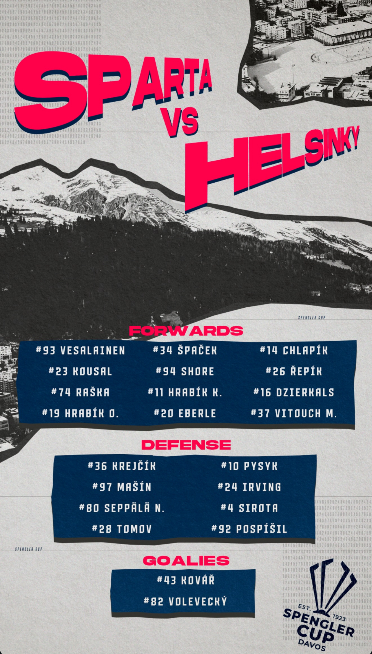 Herzlich willkommen, liebe Eishockeyfans zum zweiten Turniertag des Spengler Cups! Heute treffen IFK Helsinki und Sparta Prag aufeinander. Einwurf der Scheibe ist um 15:10 Uhr in der Zondacrypto Arena. Vorab erfahrt ihr Wissenswertes über beide Mannschaften und seid ab Spielbeginn live dabei. Viel Spass und gutes Mitfiebern!