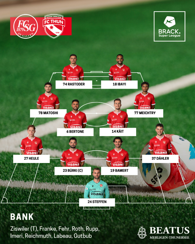 Beim FCSG gibt es drei Änderungen. In der Dreierabwehr ersetzt Albert Vallci Cyrill May. Im Zentrum fällt Lukas Görtler verletzt aus, dadurch rückt Nezizi eine Position zurück, Witzig übernimmt zentraler und auf der Seite startet Chima Okoroji. Im Angriff erhält Shkelqim Vladi den Vorzug vor Aliou Balde.